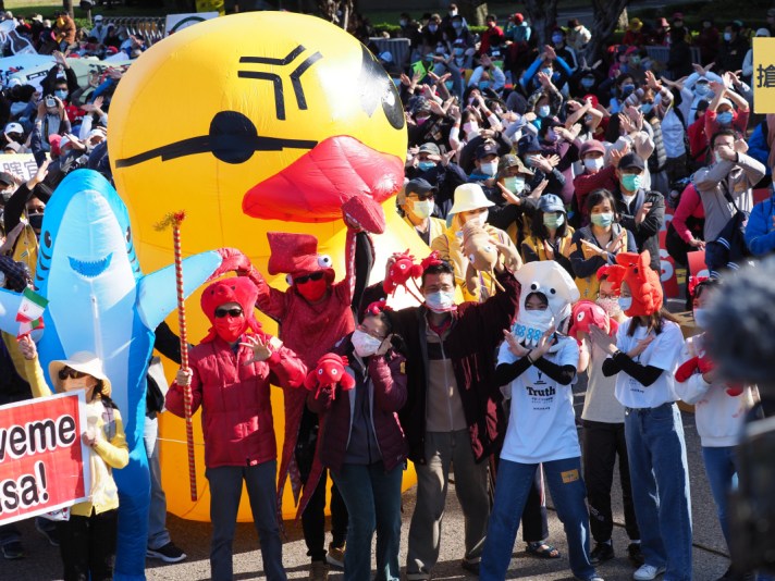 遊行大隊中有六種生猛海鮮,象徵無良流氓官僚用盡各種黑心手段迫害人民,螃蟹(橫行霸道)、龍蝦(又聾又瞎)、鯊魚(血盆大口官僚吃人)、章魚(迫害手段多 製造假案生產線)、魷魚(殘忍冷血玩弄人民的魷魚遊戲)、墨魚(用行政資源媒體抹黑人民),強迫讓人民吃到痛風,苦不堪言!105歲的阿嬤也跟著子孫共10人齊聚凱道,表達人民要爭取法稅人權的心聲。
