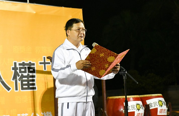 凱道上的活動持續到晚上,同時也邀請了許多受災戶到場發聲,包含受到國際矚目的太極門案,今年的12月19日適逢太極門事件第25週年紀念,主辦單位表示,人生有幾個25年?是從出生到成家、從青絲到白髮、從闔家歡樂到生死兩隔、是家園從蓬勃到荒蕪的一場悲劇。有誰能想得到,1996年,台灣已經解嚴了九年,邁入了民主的時代,卻發生了如此驚天動地的法稅人權迫害案件?並且迫害長達25年之久,至今仍無法獲得平反?