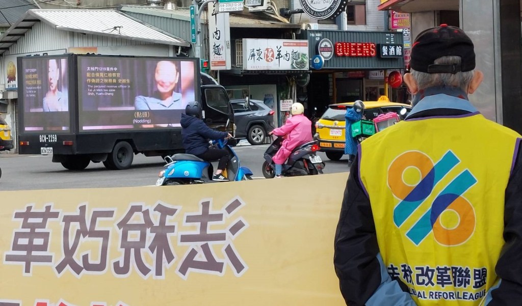 【記者方珍/桃園報導】法稅改革聯盟桃園區的志工,在12月26日耶誕節的假期,不畏氣象局發布低溫、大雨及陸上強風3特報,體感溫度約9度的寒冷天候,依然站在街頭拉布條,推動法稅真改革良心救台灣,訴求廢獎金、救冤案、護人權。
