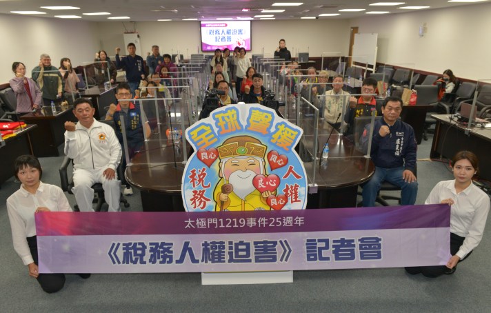 【記者蘇秋心/綜合報導】據法務部統計,2020年新增欠稅欠費強制執行案件竟高達1,431萬件,但財政部估計2021年到十一月就已經超徵稅收3,800多億元,近八年已超徵人民稅收9,700億以上,不公不義的稅務冤案頻傳,種種稅制亂象,造成台灣稅災氾濫,人民苦不堪言。近期由聯合國/NGO世界公民總會、法稅改革聯盟、平反1219行動聯盟等多個民間團體結合國內外人權專家與組織,陸續在美國華府及全台灣各縣巿舉辦記者會,為台灣各地稅務人權受害者發聲,並呼籲台灣政府解決問題!12月29日於台南民主殿堂市議會舉辦「稅務人權迫害記者會」,台南市議員盧崑福合辦,透過被學者專家稱為「法税照妖鏡」的太極門案件,揭露台灣稅務人權遭受迫害不為人知的一面,同時舉行焦點儀式,與會的民意代表共同將「良心」標誌貼在人民的守護神土地公上,象徵每一個人以良心勇敢發聲,學習土地公精神護衛人民,讓百姓可以安居樂業。立法委員陳亭妃、台南市議員盧崑福、李鎮國、陳昆和、陳怡珍、王家貞、林燕祝、李文俊等議員及南區大恩里里長施國熙均親自出席或派代表聲援。