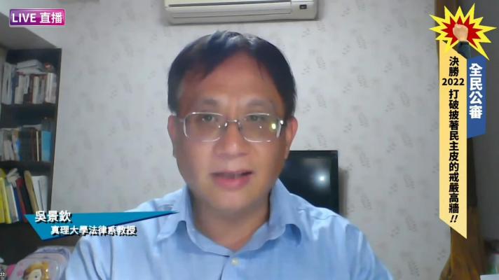 【記者張耘心報導】告別了2021年,台灣2022年能否有新氣象?線上直播節目《全民公審》1月2日以〈決勝2022!打破披著民主皮的戒嚴高牆!〉為題,特別邀請真理大學法律系教授吳景欽,一起探討被國外稱為民主燈塔,也自詡為民主國家的台灣,是否真正的民主?