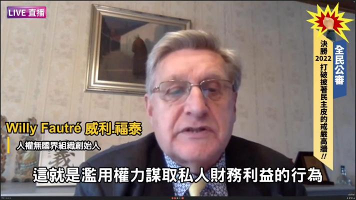 人權無國界組織創辦始人Willy Fautré 威利.福泰表示,國家機構本身的利益衝突,在太極門案件中是個問題。時隔這麼多年,財政部、國稅局、行政執行署等官員,由於貪腐的獎金制度,不惜捏造逃稅案件,只為獲得獎金。根據歐盟機構的定義,他引用貪腐可以界定為「濫用不被信任的權力謀取私利」,很顯然,太極門案件存在著官員腐敗現象,存在著行政權力濫用職權謀取私利,關鍵就在獎勵金制度。它惡性導致過度徵稅,甚至捏造逃漏稅情事。這就是濫用權力謀取私人財務利益的行為。