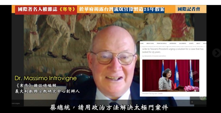 太極門25年來受迫害仍未獲解決,全球知名人權雜誌《寒冬(Bitter Winter)》及多國國際人權網站,2021年發文上百篇聲援,國際人權人士12月7日於美國華府舉行記者會表達譴責,25名國際資深學者與人權專家更聯名寫信給總統蔡英文,要求嚴正看待這個問題。義大利宗教社會學家馬西莫・英特羅維吉(Massimo Introvigne)博士特別代表聯名人發表四點聲明,他表示,唯有台灣自己維護良好的形象,才能受到國際支持,太極門案若不獲解決,台灣的國際形象將繼續受損,「政府正在慷慨地提供繩索,讓敵人吊死台灣。」最後他鄭重重申,請蔡總統政治解決太極門案。