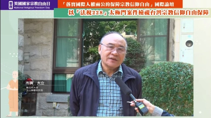 無任所大使暨玉山神學院院長布興.大立表示,美國自1786年的宗教自由設立至今已經有236年的時間,以宗教的力量來做為建立一個國家最基本的力量,所以美國的憲法尊重人權跟自由,宗教的力量、自由的力量和人權的力量讓美國成為世界的大國。他認為,政府不能忘記宗教的力量,要成為整個世界的普世價值。布興.大立表示,發生超過25年的太極門案,最高法院已經有自由跟人權的公平判決,外交部、司法單位或者是財務(財政部)、國稅局都要以這個為依據,而這個就是我們還沒有去執行的地方。他鼓勵太極門要繼續爭取,不要放棄,不少的朋友和宗教自由的國家都會成為後盾。這是最後一道防線,大家一起努力,幫助台灣政府,站在正向的力量跟正義的力量。