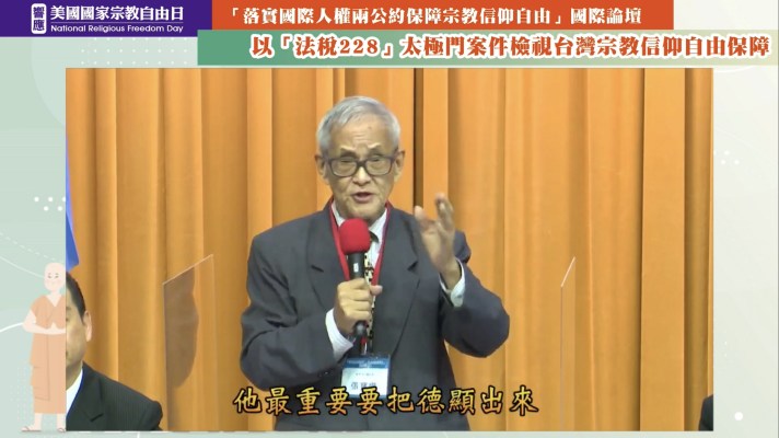【記者蔡青宥/台北報導】為紀念1786年通過湯瑪斯·傑佛遜起草的《維吉尼亞宗教自由法令》,美國宣布每年的1月16日為「國家宗教自由日」,重申宗教自由對美國社會及全世界的重要性。為響應此紀念日,聯合國/NGO世界公民總會、法稅改革聯盟等16個民間團體,聯合於線上舉辦「落實國際人權兩公約保障宗教信仰自由」國際論壇,邀請多位專家學者以「法稅228」太極門案件檢視台灣宗教信仰自由保障,藉由回顧美國推動宗教自由的過程,檢視政府對於人民宗教信仰自由與人權自由執行的現況;並強調,宗教自由是個人和國家穩定的根源,維護它對保護人類尊嚴至關重要,必須謹慎守護珍惜。