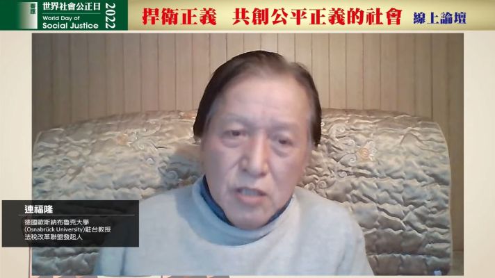 【記者谷悅禾/台北報導】全球天災人禍不斷,除了延燒兩年多的新冠疫情,近期令全球人心惶惶的,還包括俄烏戰事倘起,牽一髮而動全身的威脅。每年的2月20日是聯合國「世界社會公正日」,聯合國大會曾言,要在國家內和國家之間實現並維持和平與安全,就必須有社會發展和社會公正。為正視這個議題,聯合國/NGO世界公民總會、法稅改革聯盟、太極門氣功養生學會、稅改青年陣線等十個民團共同舉辦「捍衛正義 共創公平正義的社會」線上論壇,十餘位專家學者現場連線為公義發聲。德國歐斯納布魯克大學(Osnabrück University)駐台教授暨法稅改革聯盟發起人連福隆表示,唯有上帝的公義,人民才能信任政府,冤假案政府不處理,人民就不相信政府,就是一個腐敗的統治者。