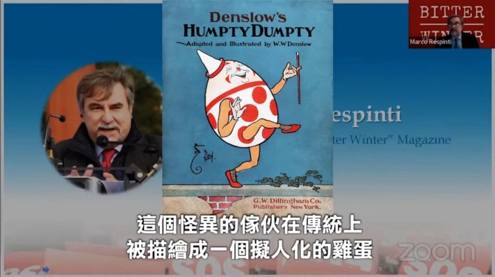 開幕影片中《寒冬》雜誌執行編輯Marco Respinti引用路易斯.卡羅爾(Lewis Carroll),在《鏡中奇緣》一個擬人化的雞蛋,名字叫蛋頭的故事。比喻太極門事件是這個故事的真實翻版。在四分之一個世紀裡,太極門遭受了一些流氓官僚對文字的暴政,像蛋頭先生對文字的專橫一樣。他們不相信真理,也不相信字詞的力量具有真實的意義,設法以法院反覆聲明從未犯下的罪行,來迫害整個心靈修行團體。他們的動機可能是庸俗的個人利益和意識形態上的仇恨。太極門是一個和平的組織,以良心和仁愛為世界帶來和諧與博愛。究竟為什麼要讓迫害者剝奪弟子們享有真正的兄弟姐妹情誼的權利?真正的兄弟姊妹情誼,是一個正義社會的標誌,而在這裡,蛋頭先生不是國王。