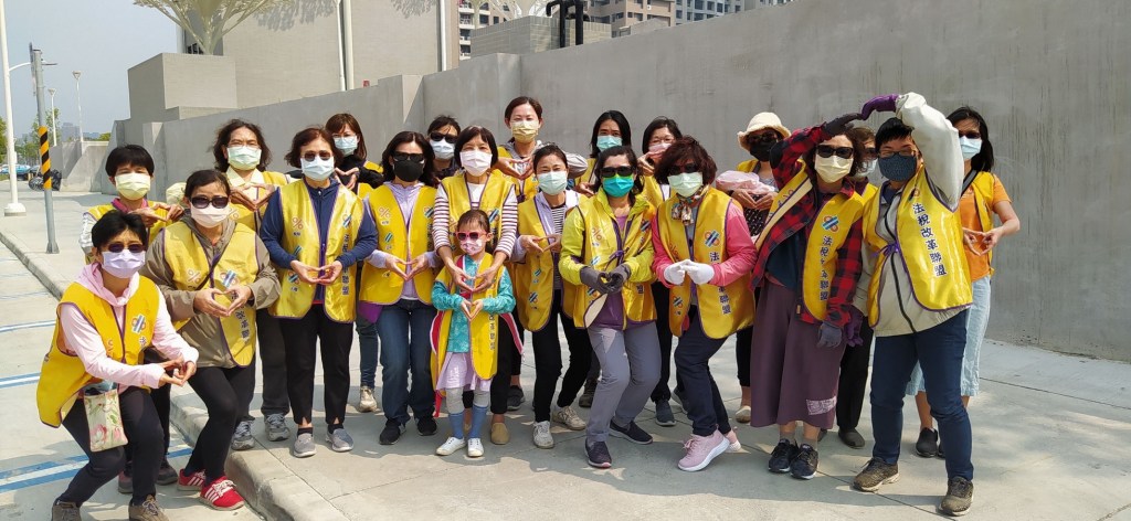圖二:法稅改革聯盟志工聚集在高雄市美術館火車站前合影,呼籲執政者要實現零歧視的女性人權和人人平等的社會。