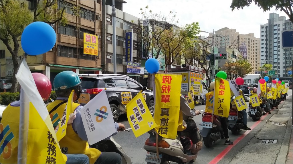 圖三:民團於高屏地區各景點以宣傳車、機車連等方式,宣導正確法稅知識,並要求政府真正落實賦稅人權及法稅改革正義。
