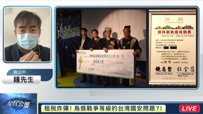 【記者張若渝報導】近期爆發的烏俄戰爭,不僅造成嚴重的傷亡,也讓全球陷入了緊張的氛圍,導致全球經濟亂象,石油、黃金、金屬等自然資源價格飆漲,民生苦不堪言,造成台灣壓力與影響也不小。但影響台灣問題的不只是戰爭的壓力,還有潛藏國計民生的危機。線上直播節目《全民公審》3月13日特別以〈租稅炸彈!烏俄戰爭等級的台灣國安問題?!〉https://www.youtube.com/watch?v=u2Gv6LT4nQ4 為題,邀請受災戶現身說法,並請專家剖析說明。