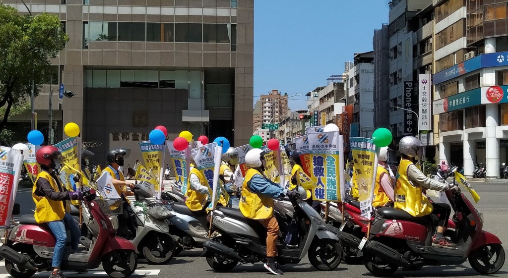 圖三:民團於高屏地區各景點以宣傳車、機車連等方式,宣導正確法稅知識,並要求政府真正落實賦稅人權及法稅改革正義。