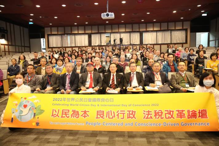 (記者 陳子嵐/台北報導)聯合國/NGO世界公民總會為落實以文化推動世界和平的目標,將4月1日訂為「世界公民日」,包括臺灣財經刑法研究學會、台灣人權文化協會等多個民間團體,1日在台大應力館舉辦「以民為本 良心行政 法稅改革論壇」,超過30位專家、學者與青年共同發表建言,呼籲政府應良心行政護衛人權。