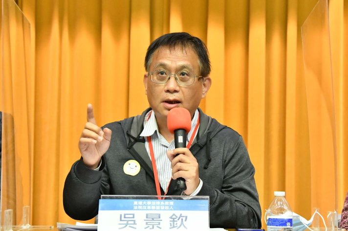 「法學教育的核心就是良心。」真理大學法律系教授、法稅改革聯盟發起人吳景欽提到,良心反應到法學教育,最有關聯的是法律倫理。他以一道律師、法官法律倫理的考題和觀眾分享法官迴避制度:最高法院發回、受命法官曾參與準備程序後高升、最高法院法官撤銷發回,回任二審當審判長等相同案件遇上同一位法官竟然都無須迴避,如此的司法令人無法信任!他也以太極門案、前立委高志鵬圖利罪案為例提到,這些都是相同的問題,吳景欽痛批:「想要將良心作為自己的法學教育,如果學生聽進去,他肯定考不上法官!」