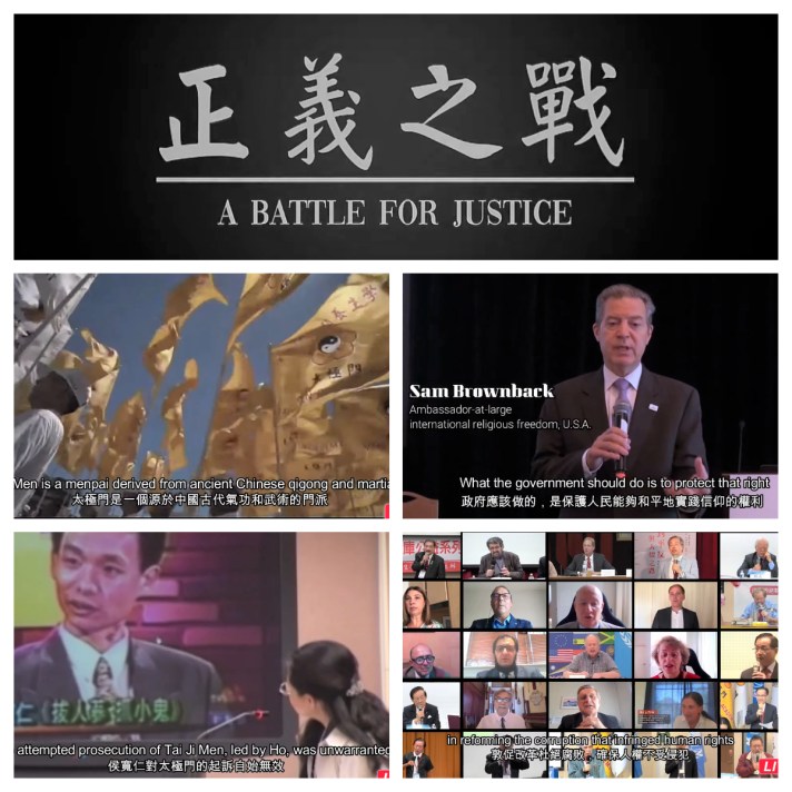 影片—正義之戰是由居住美國年僅14歲的小女生為聲援太極門案件而製作,希望能喚醒政府官員的良知,彰顯公理正義。在太極門案中成千上萬的受害者之一 Brenda Chen為了遠離夢魘,移民美國至今已18年,她眼中噙著淚水回憶訴說太極門事件。1996年12月24日平安夜,她爸爸在沒有任何人指控的狀況下,被檢察官收押禁見,一關就是4個月。侯寬仁檢察官以飢餓、疲勞、威脅、恐嚇等手段,只為了得到不利掌門人的證詞,甚至故意讓他看到妻子被拘禁的假象,以兩個女兒會沒人照顧為由,要脅她父親作證,說出掌門人的功夫是假的。最後,她父親依循良心,說掌門人的功夫是真的,竟被侯檢察官延長羈押兩個月。