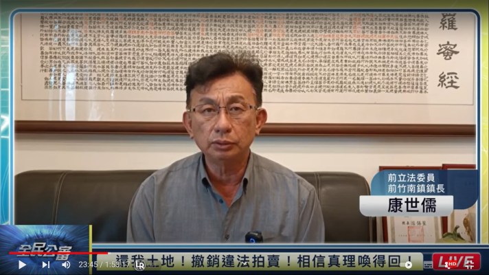【記者張莞恩/苗栗報導】4月17日全民公審線上節目,以「還我土地!撤銷違法拍賣!相信真理喚得回」為主題,同時也響應國際良心月,為這個世界注入溫暖與希望。邀請到前立法委員暨前竹南鎮鎮長康世儒參與線上直播(https://www.youtube.com/watch?v=YKpQBMMPpP8)。