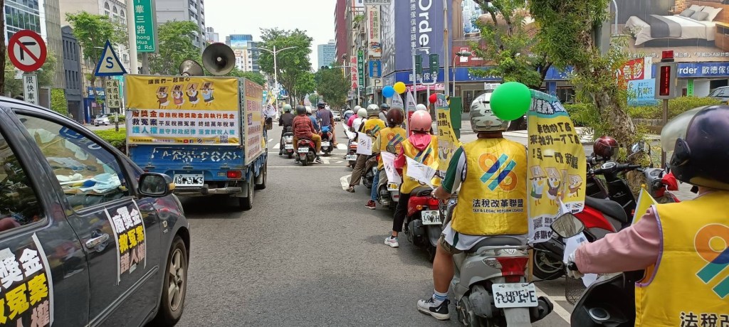 圖三:民團於高屏地區各景點以宣傳車、機車連等方式,宣導正確法稅知識,並要求政府真正落實賦稅人權及法稅改革正義。