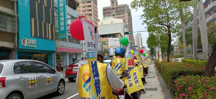 圖三:民團於高屏地區各景點以宣傳車、機車連等方式,宣導正確法稅知識,並要求政府真正落實賦稅人權及法稅改革正義。