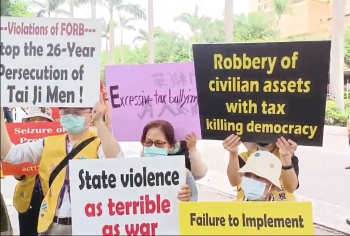 「為何今天沒有立委參加?我們覺得非常地遺憾。」Aaron Lee指出,太極門案已向一府五院陳情,也有300多位立委為此案發聲,但是台灣行政權獨大,立委提出的質詢對行政機關都沒有拘束力,行政單位一意孤行,最後將太極門的修行聖地違法拍賣收歸國有,嚴重侵害修行人思想信仰上的自由,為何立委沒有來參加,是否立委認為沒有施力的點?