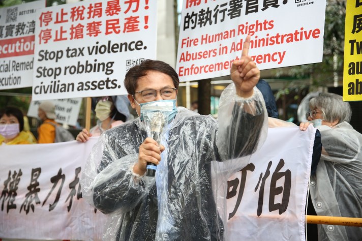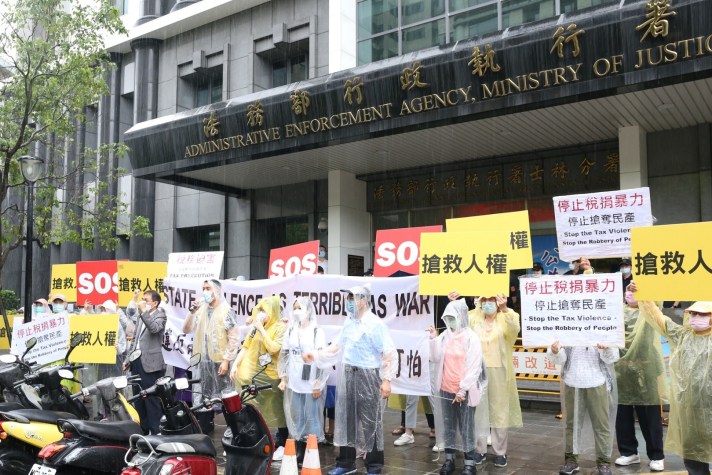 輔仁大學兼任助理教授魏賜聰在法務部行政執行署前指出,在國際審查委員會上,當行政執行署被NGO問到限制出境議題時,回答是因為欠款超過2000萬,而且隱匿財產,所以有680個案件要限制出境。他質疑,真的是這樣嗎?行政執行署說押就押,說扣就扣,說管收就管收,這是迫害人民的體制,已違反公政公約第9條的規範。
