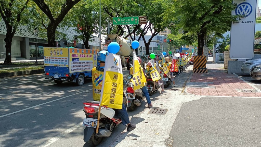 圖三:民團於高屏地區各景點以宣傳車、機車連等方式,宣導正確法稅知識,並要求政府真正落實賦稅人權及法稅改革正義。