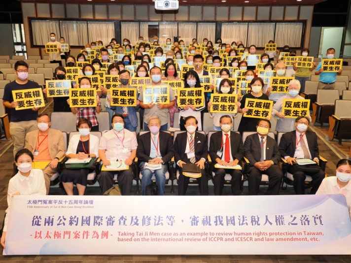 【記者陳嘉軒/台北報導】被檢察官製造的假案,人民要多久才能獲得司法平反?而司法判決還了清白,行政機關要多久才會認錯更正?司法公正及公權力除錯機制檢驗台灣是否真的落實人權兩公約。今(2022)年7月13日是「台灣法稅228」重大人權指標案例──太極門冤案平反十五周年紀念日,聯合國NGO世界公民總會、臺灣財經刑法研究學會、中正大學財經法律研究中心等近30個民團舉辦主題為「從兩公約國際審查及修法等,審視我國法稅人權之落實-以太極門案件為例」論壇,共有50位重量級專家學者及菁英人士提出興革建言,期盼台灣成為真正維護人權、捍衛正義的國家。