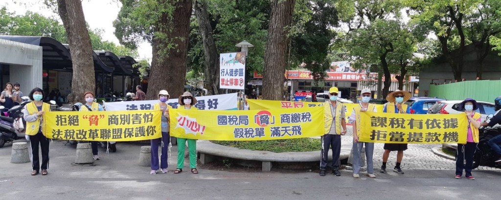 圖二:法稅改革聯盟志工期許台灣法稅改革成功,呼籲呼籲全民覺醒,才能抵制國家公權力過大,避免民主自由人權嚴重失衡的情況。