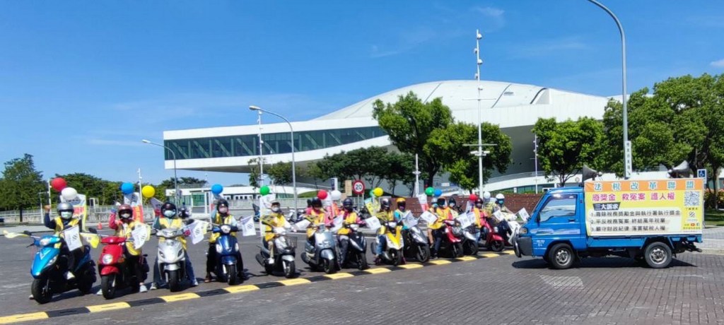 圖三:民團於高屏地區各景點以宣傳車、機車連和舉牌、拉布條等方式,宣導正確法稅知識,並要求政府真正落實賦稅人權及法稅改革正義。