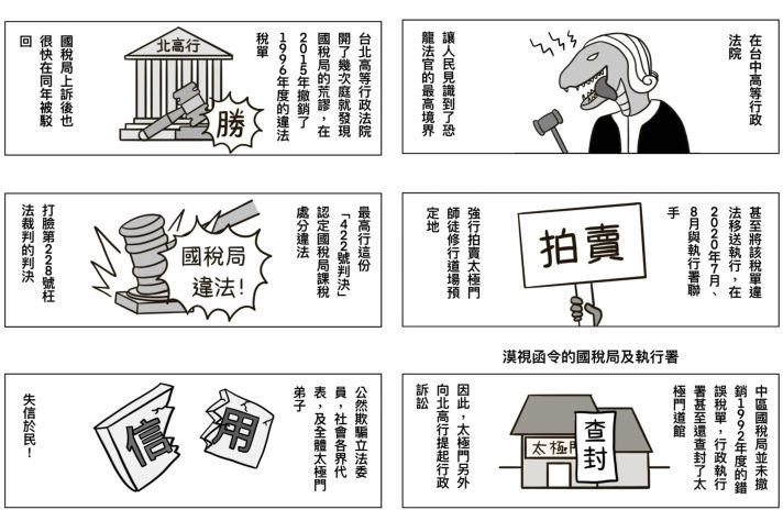 然而國稅局卻將1992年度稅單違法移送執行,在2020年聯手行政執行署違法強行拍賣太極門師徒修行道場預定地,並由國稅局承受。