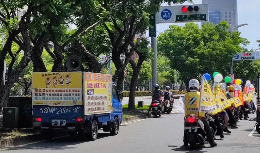 圖三:民團於高屏地區各景點以宣傳車、機車連、舉牌和拉布條等方式,宣導正確法稅知識,並要求政府真正落實賦稅人權及法稅改革正義。