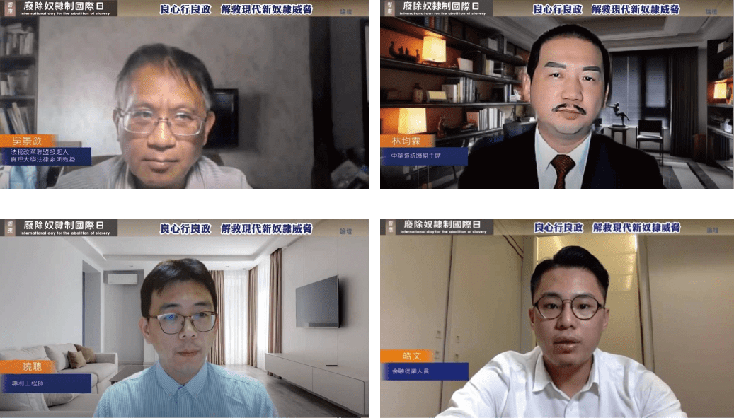 太極門掌門人暨聯合國NGO世界公民總會副主席致詞表示,國家有義務創造使人們享有經濟社會文化權利的環境,並實現人人享有公民及政治自由、無所恐懼且不虞匱乏的生活。如何避免各種形式的奴隸,包括現代法稅奴隸,在於每一位世界公民的良心!身為制法者與執法者,須謹記上述人權保障的精神,在實務上謹慎而為;而身為世界公民,無論身處何位,也應為不公不義發聲,團結行動,發揮監督與互助的力量,終結現代奴隸制。