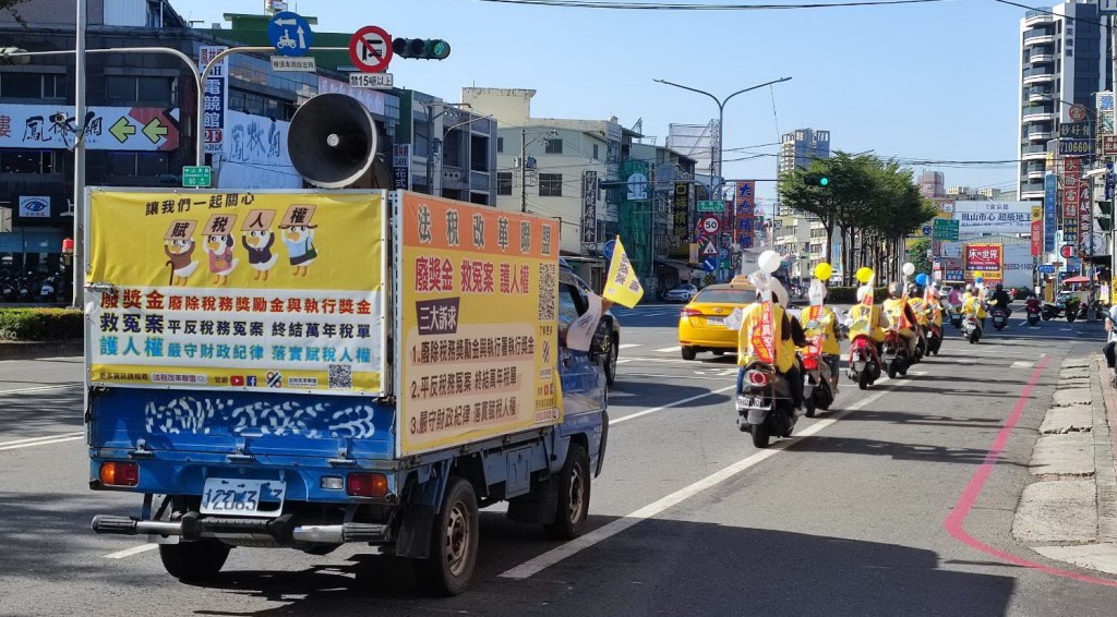 【記者李茗/高雄報導】台灣人權現況如何?響應聯合國人權日,法稅改革聯盟及平反1219行動聯盟高屏地區志工10日以宣傳車、機車連、舉牌和拉布條等方式,在各個重要道路倡議正確的法稅知識並推動法稅人權改革,志工指出,侵害人權最多就是賦稅人權,國內又以太極門案為最。