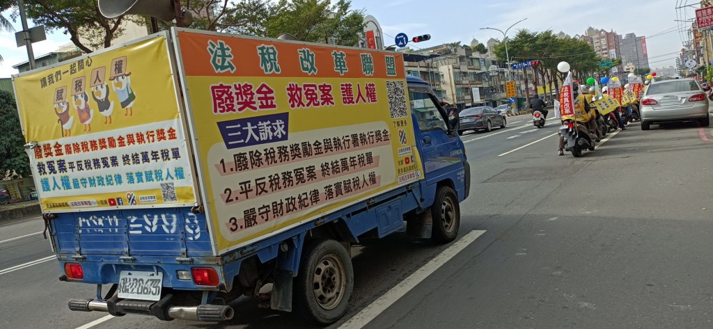 圖三:民團於高屏地區各景點以宣傳車、機車連等方式,宣導正確法稅知識,並要求政府真正落實賦稅人權及法稅改革正義。