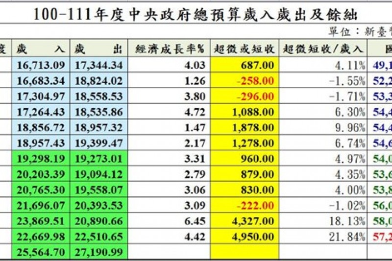 前財政部長蘇建榮的說法,在他任內「實質還債4837億元」但實質有還債,卻又舉新債,所以國債鐘從2011年至2022年直線上升(如圖表一)。蘇建榮卸任後主張「超徵應先還債」。其實人民並不反對還債,我們反對的是政府的濫花錢,誠如多位立委質詢時所擔心的包山包海空白授權,規避相關法規可以不受監督,讓超徵款進入國庫的大水庫,任由行政單位的挪用。立委翁重鈞在預算方面算是學有專精,砲轟主計長朱澤民及立委柯建銘不要再破壞我們的預算制度了,沒有計畫用喊的就要在野黨背書通過預算,如果都沒有看到計畫書先射箭再畫靶,那我們何必要那麼多立委來把關呢?