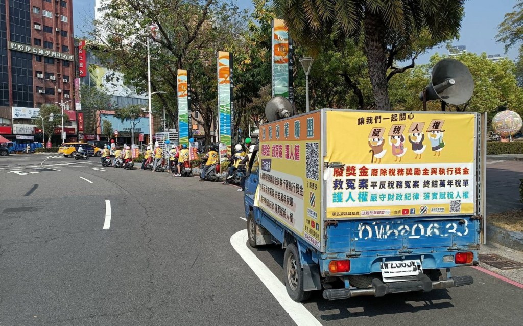 (記者王曉茗/高雄報導)法稅改革聯盟及平反1219行動聯盟高屏地區志工11日以宣傳車、機車連、舉牌和拉布條等方式,在各個重要道路倡議正確的法稅知識並推動法稅人權改革,呼籲制定健全的公務員獎懲制度,降低公務員違法濫權機率,保障人民權益。