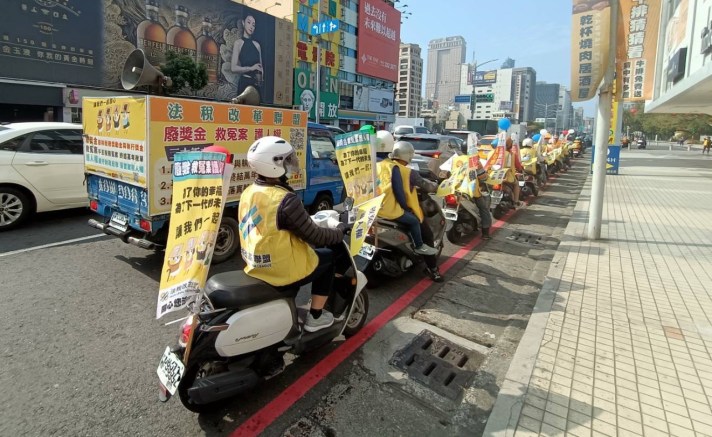 圖三:民團於高屏地區各景點以宣傳車、機車連、舉牌和拉布條等方式,宣導正確法稅知識,並要求政府真正落實賦稅人權及法稅改革正義。