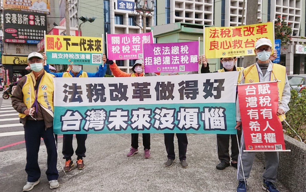 (記者王曉茗/高雄報導)法稅改革聯盟及平反1219行動聯盟高屏地區志工25、26日以舉牌和拉布條等方式,在各個重要道路倡議正確的法稅知識並推動法稅人權改革,近年經濟不佳卻年年超徵,國家體制的不正義,是執政者的羞恥,照顧好人民的生活是政府的義務、權利也是責任。