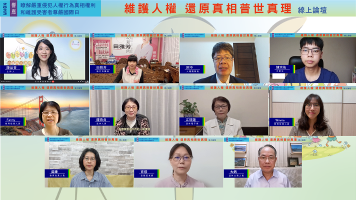 【記者林宸/桃園報導】響應聯合國「了解嚴重侵犯人權行為真相權利和維護受害者尊嚴國際日」,聯合國NGO世界公民總會、聯合國NGO世界公民總會台灣總會、平反1219行動聯盟、法稅改革聯盟、台灣納稅人聯盟、良心時代運動、稅改青年陣線、太極門氣功養生學會、WPN世界民報、GPDN (Global People Daily News)、正大出版社等於3月24日當天共同舉辦「了解嚴重侵犯人權行為真相權利和維護受害者尊嚴國際日」 線上論壇。