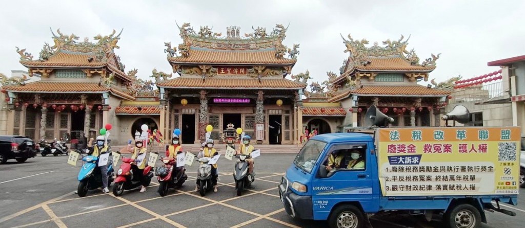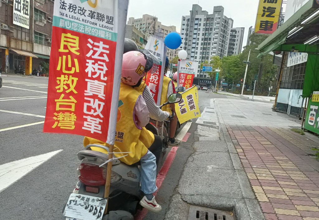 圖三:法稅改革聯盟志工以機車連繞行高雄市區,推動法稅人權教育。