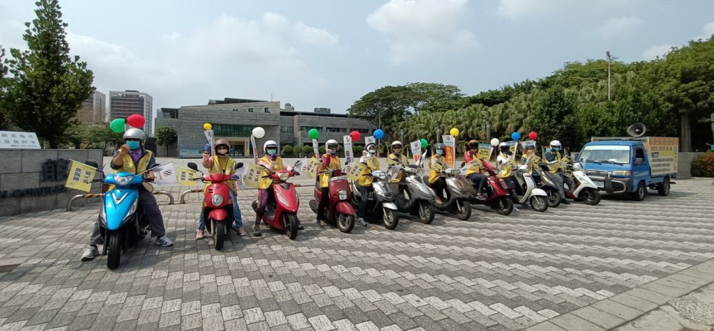 圖三:法稅改革聯盟志工以機車連繞行高雄市區,推動法稅人權教育。