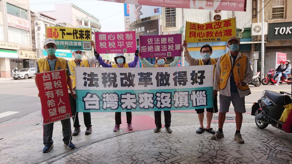 圖一:法稅改革聯盟志工倡議建立合法、合理、公正的稅制,重視台灣賦稅人權。