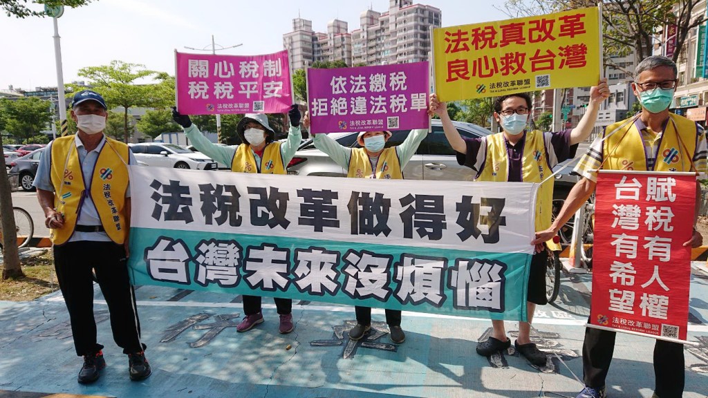 圖二:民團以宣傳車、機車連、舉牌和拉布條等方式,在各個重要道路倡議正確的法稅知識。
