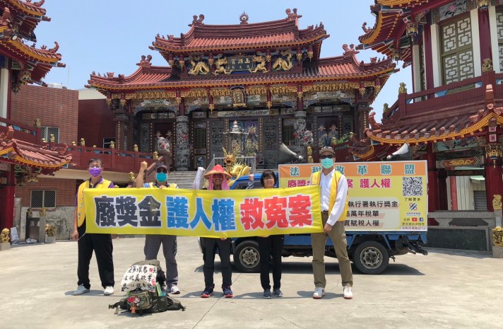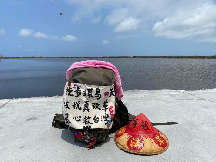 (記者李茗/高雄報導)法稅改革聯盟(簡稱法盟)志工阿展發願「走路環島、為台灣祈福」,5月20日第13天來到高雄,他從桃園出發累計里程350.7公里,在臉書上寫下初衷:「不是因為困難才去做,是因為有希望跟願力就去做。」