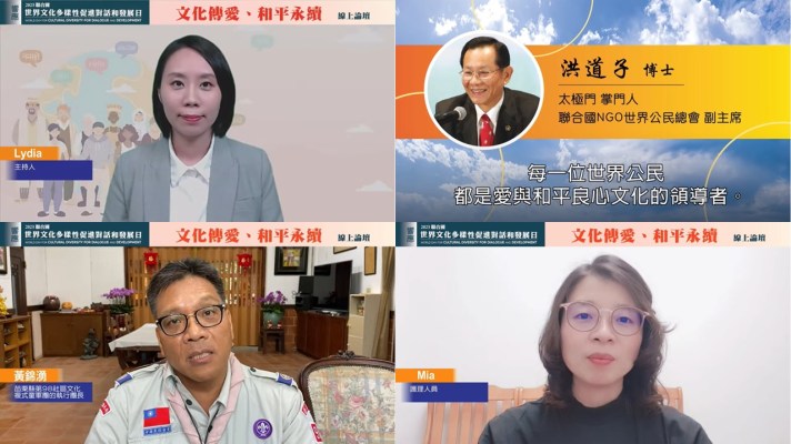 【記者陳菲燕/苗栗報導】2023年5月21日聯合國NGO世界公民總會、聯合國NGO世界公民總會台灣總會、良心時代運動網站、太極門氣功養生學會、WPN世界民報、GPDN(Global People Daily News)等團體,為響應「聯合國世界文化多樣性促進對話和發展日」,舉辦「文化傳愛、促進世界和平永續」的線上論壇,以慶祝世界文化的豐富多樣,弘揚跨文化對話在實現和平與可持續發展中的重要作用。