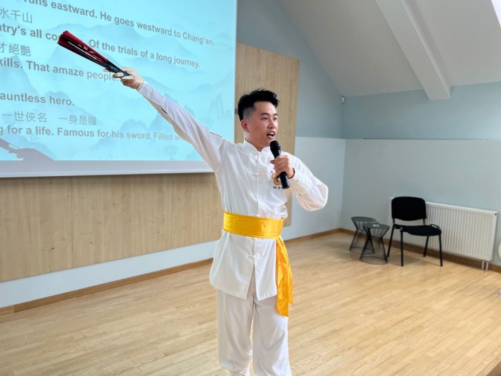 歐洲信仰自由協會(FOB)科學委員會主席Rosita Šorytė、拉脫維亞學者Ina Kirnicanska對「俠客」功夫扇展演讚不絕口,表示非常震撼!