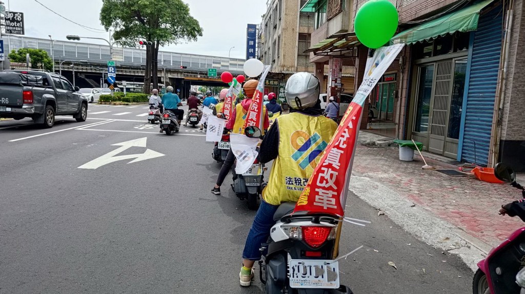 圖三:民團以宣傳車、機車連、舉牌和拉布條等方式,在各個重要道路倡議正確的法稅知識。