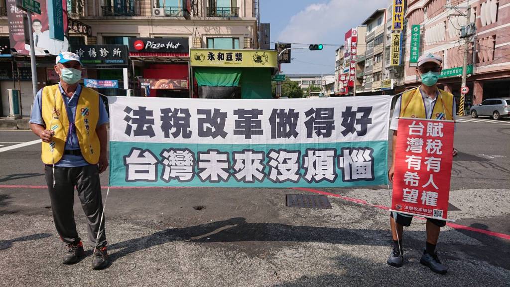 圖二:民團在各個重要道路舉牌、拉布條,倡議正確的法稅知識並推動法稅人權改革。