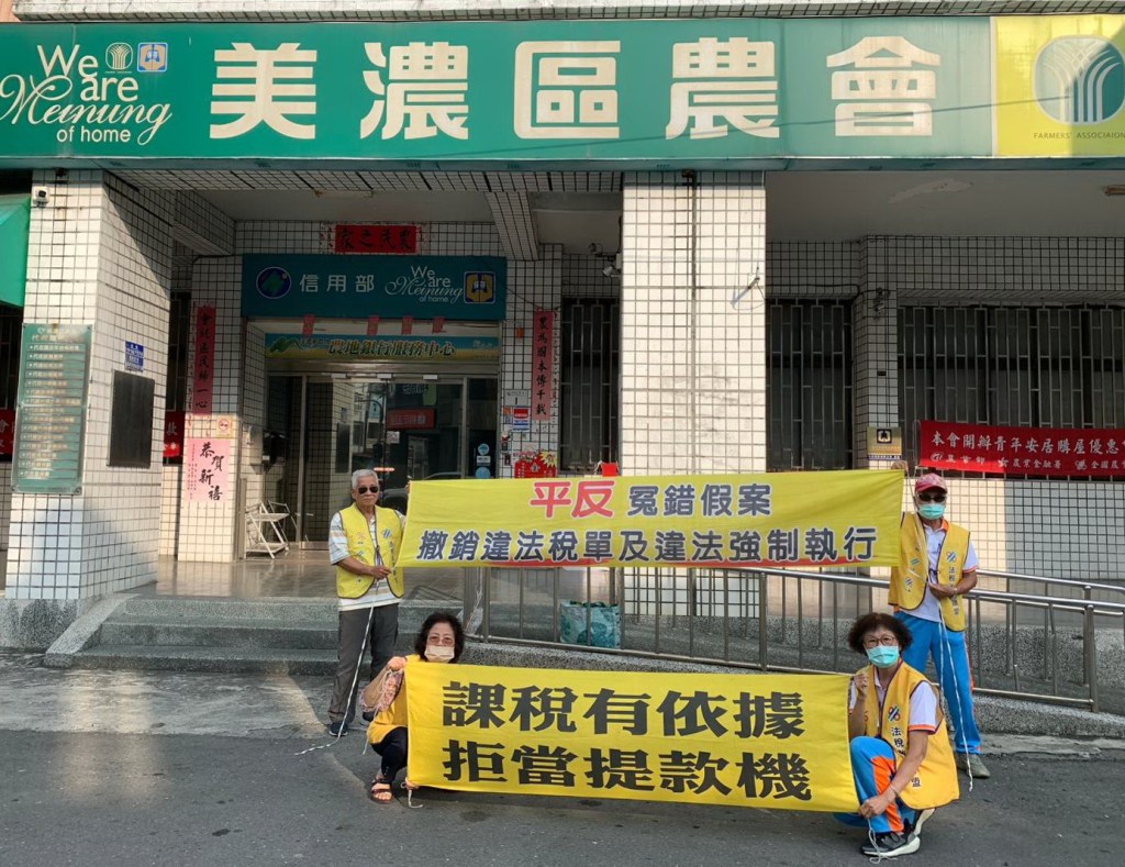 圖三:民團於高雄市六龜區農會前呼籲政府課稅要有依據。