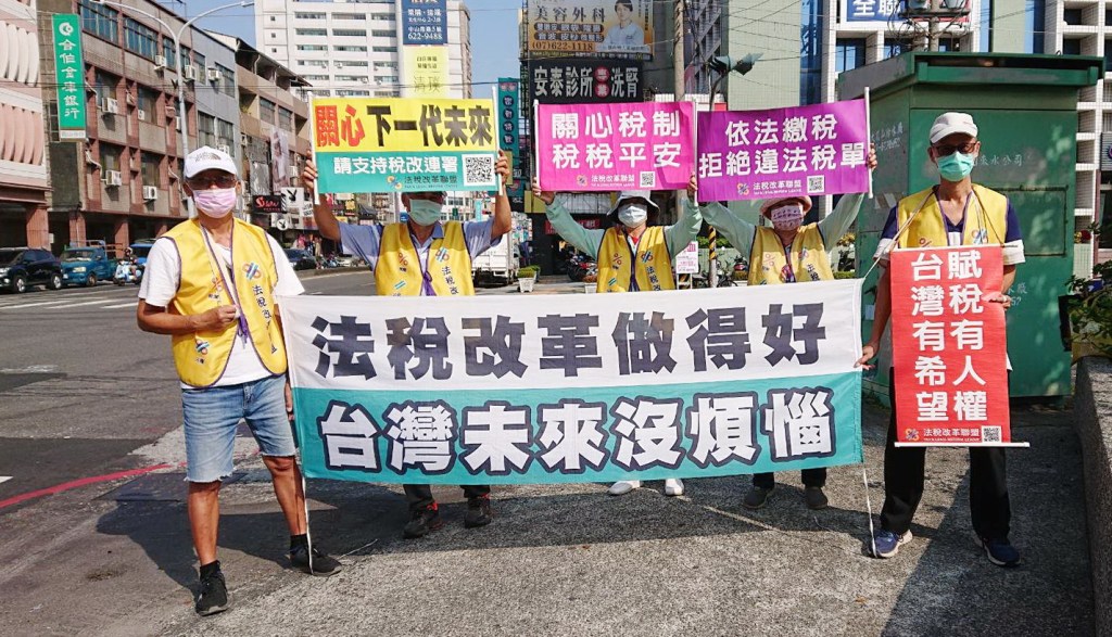 (記者王曉茗/高雄報導)法稅改革聯盟及平反1219行動聯盟高屏地區志工在11月的街頭,持續以舉牌和拉布條等方式,在各個重要道路倡議正確的法稅知識並推動法稅人權改革,呼籲官員必須依法行政,並給與人民行政救濟的權利,保障賦稅人權。