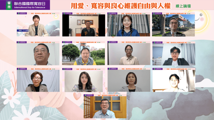 【記者王小敏/報導】11月16日是聯合國「國際寬容日」,旨在提醒大眾對於不寬容的現象所造成的危險要有所認知。天災人禍之所以形成,在於人與人之間、人與萬物之間、人與環境之間失衡所產生的衝突。由聯合國NGO世界公民總會、聯合國NGO世界公民總會台灣總會等十數個民團所主辦的「用愛、寬容與良心 維護自由與人權」線上論壇,桃園市議員段樹文參與表示,非常感謝太極門洪道子師父以及師兄師姊,發起用愛心來維護社會的公平正義。太極門弟子Halope以太極門案件為例表示,希望在台灣違法官員能夠早日良心覺醒,改正錯誤,尊重文化差異和多樣性。