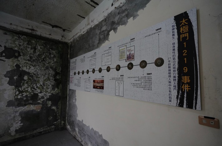 現場導覽1219太極門事件的始末,85年12月19日,不肖檢察官違法搜查,又以法稅作為手段,雙刃斬斷人民的自由與夢想,是官僚濫用公權力施加在人民的酷刑。此外,瑞士山莊今昔對比的影片與史料呈現,令人感慨萬千,但也因為太極門師徒堅持公理與正義,奮鬥27年,照亮台灣法稅改革之路,引動專家學者投入研究稅務、稅法與司法的缺失,進而促成相關的修法、立法與改革。同時,太極門人權迫害案也引起國際關注,成為檢驗台灣人權進步的指標。